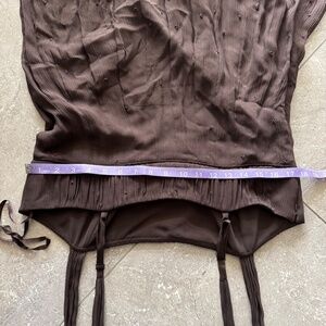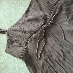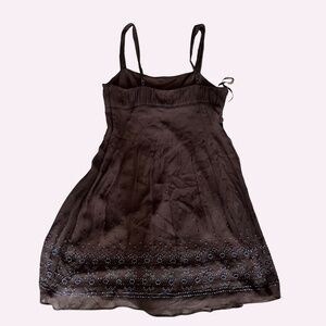 Y2K Vintage BCBG Silk Beaded Brown Babydoll Dress Blue Beads Size Large
