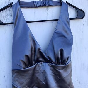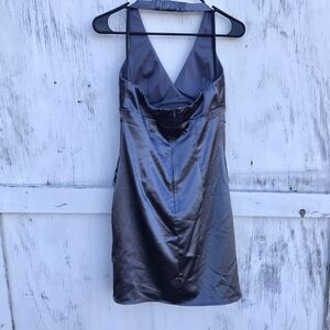 Y2K Vintage BCX Silver Satin Halter Dress 3 S Women Prom Petal Coquette Grunge