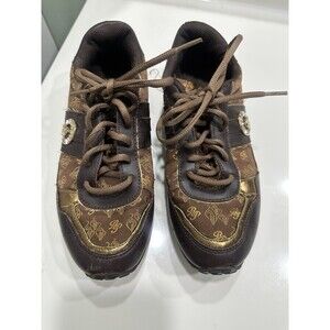 Y2K Vintage Baby Phat Leather Athletic Shoes Gold And Crystal Accents Size 9