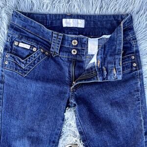 Y2K Vintage Baby Phat Wide Cuff Low Rise Capri Denim Jeans Gold Cats Juniors 9