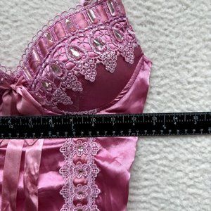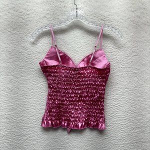 Y2K Vintage Barbie Pink Princess Cami Camisole Top S Small Satin Rhinestone