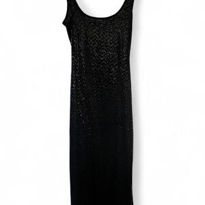 Y2K Vintage Bebe Black Sequin Midi Dress Side Slit Glam Formal Party Wear