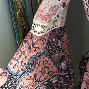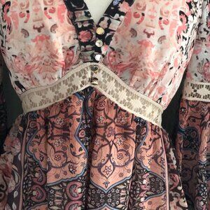 Empire Waist, Lace Peek a Boo Trim, 3/4 Bell Sleeve