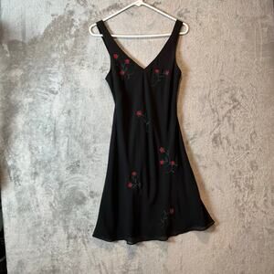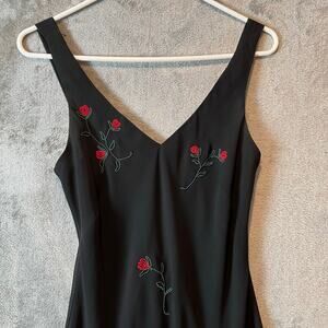 Y2K Vintage Black Dress Red Rose Embroidered Soft Grunge Fairycore Romantic Sz 4