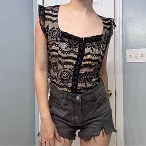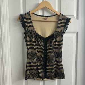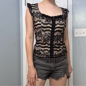 Y2K Vintage Blouse Black Lace Coquette Gothic Romantic Vampire Size Medium
