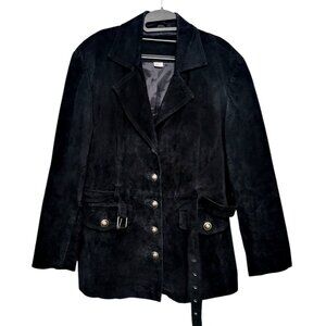 Y2K Vintage Boho Black Suede Belted Jacket Genuine Leather