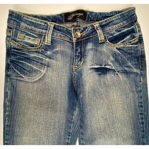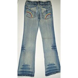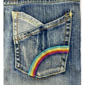 Y2K Vintage Bonage Juniors Women 9/10 Rainbow Embroidered Jeans Blue Low Rise