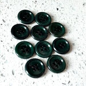Y2K Vintage Buttons Lot Dark Green 10 Pcs Round 4 Hole DIY Art Crafting Sewing