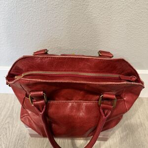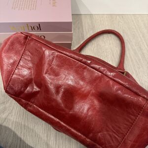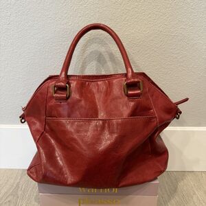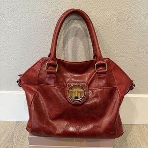 Y2K Vintage Chunky Elliot Lucca Cherry Red Leather Handbag w/ Gold Accents & zip