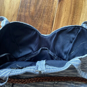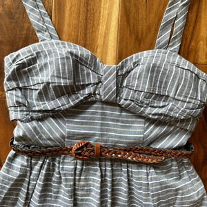 Cute linen stripe dress with belt.