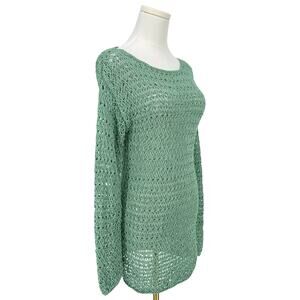 This Y2K vintage piece features a coastal boho vibe with a beautiful mint green color and open knit design.