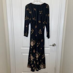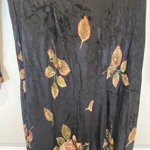 Y2K Vintage Crushed Velvet Maxi Dress Dark Floral Whimsigoth Fairygrunge Black 6