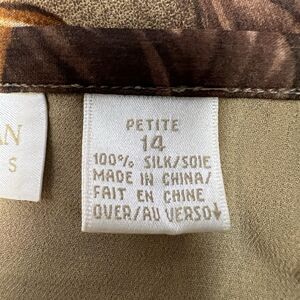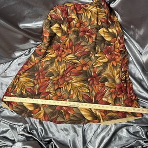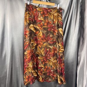 Y2K Vintage 80s Dana Buchman Petite 100% Silk Midi Skirt Womens Size 14 Petite Fall Leaves Floral Mesh Brown / Tan / Orange / Red / Gold Classic Casual Office Business Party Thanksgiving Outfit