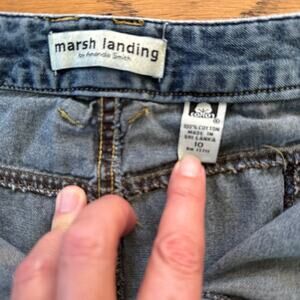 Step into timeless style with this vintage Marsh Landing denim skirt, size 10. Made from 100% cotton, this skirt features a flattering high waist, A-line silhouette, and panel seam design that gives it a structured, classic look. Mid-length (about 25” long), perfect for casual everyday wear or styling with boots and a cozy sweater for a retro vibe. The skirt closes with a zip and button front, and has X-tab detailing at the waistband for a unique touch. In very good vintage condition with no stains, rips, or tears—shows only gentle wear consistent with age. A versatile piece that works for 90s, Y2K, cottagecore, and vintage-inspired wardrobes.