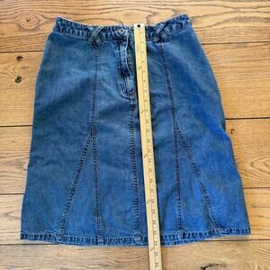 Y2K Vintage Denim Skirt Size 10 High Waist A-Line Midi 90s Cottage Boho