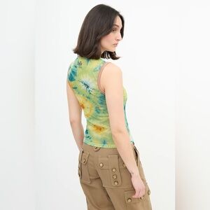 Y2K Vintage Dolce & Gabbana Sleeveless Rainbow Trim V Neck Mesh Tie Dye Top