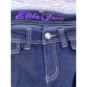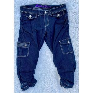 Y2K Vintage Elite Jeans SZ 9/10 Dark Denim Cargo Stretchy Bling Capris