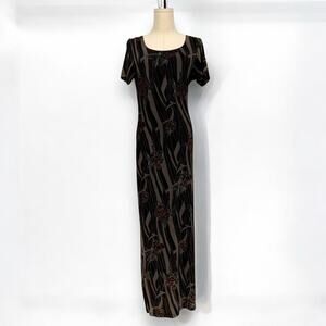 Y2K Vintage Epix Rose Print Stretch Jersey Maxi Slip Dress Madein USA Vampy Rose
