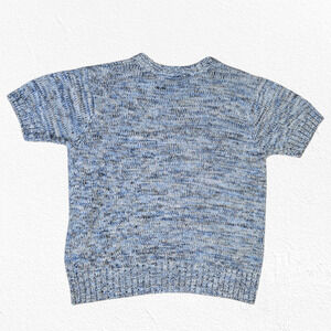 Y2K Vintage Evan-Picone Blue Marled Knit V-Neck Short Sleeve Sweater Size Medium
