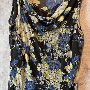 Y2K Vintage Floral Dress Grunge Handkerchief Hem Cowl Neck Lace 90s Fairycore LG
