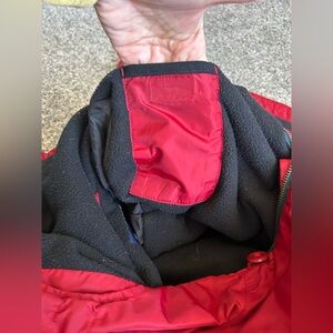 Y2K GAP men’s vintage oversized pullover nylon shell and fleece lined jacket. Kangaroo pocket in front, side zipper vent, inside chest pocket. Bungee corded on waist and hood. All Velcro is clean.