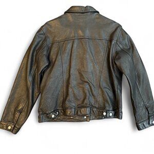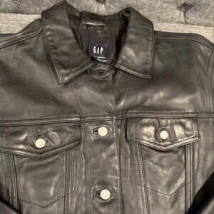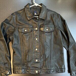 Y2K Vintage Gap Black Leather Trucker Jacket SZ M Medium Grunge Biker EUC