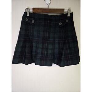 Y2K Vintage Gap Tartan Plaid Pleated Wool Mini Skirt Green and Red Size 1