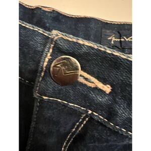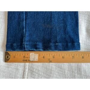 Vintage Gloria Vanderbilt jeans in a classic dark wash with a high rise and straight leg silhouette. Made in Hong Kong with durable cotton blend denim and contrast stitching. Features signature GV logo button, red tab detail, and original interior labels. Clean, timeless fit that works well for everyday wear.