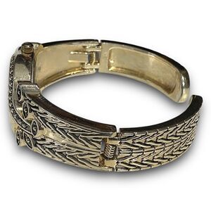 Y2K Vintage Gold Tone Round Face Bangle Cuff Bracelet Watch