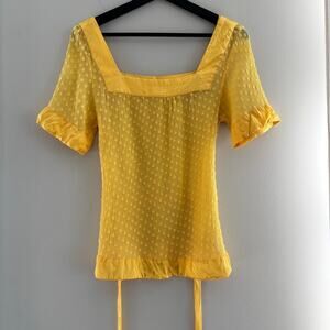 Y2K Vintage Guess Silk Blend Yellow Polka Dot Semi Sheer Top Size Medium