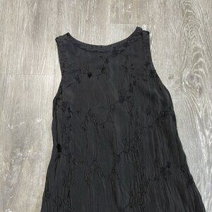 This vintage Johnny Was Item black maxi dress is fully embroidered with no stains or holes. Some of the embroidery has some loose strings but overall in good condition. Buttons in the back and the dress is sheer and unlined so it may need a slip (unlined you would have to provide your own). Gorgeous Made in USA piece - please see photos as they are the best description of condition.