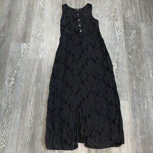 Y2K Vintage Johnny Was Item Black Maxi Dress Embroidered Button Back Size M