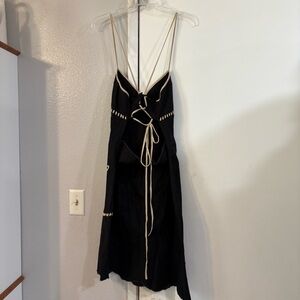 Y2K Vintage Linen Cotton Embroidered Dress Lace Up Open Back Asymmetrical M