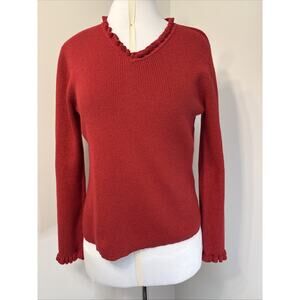 Y2K Vintage Liz Claiborne Red Shimmer Ruffle Trim Holiday Sweater L
