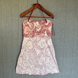 Y2K Vintage Old Navy Ivory Burgundy Pink Paisley Print Halter Neck Dress Size 10