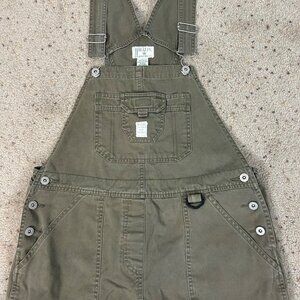 Y2K Vintage Olive Green Denim Overall Shorts Carpenter Baggy Size Large Women's