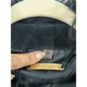 The Y2K Vintage Penny Lane Afghan Coat is a stylish and unique women's jacket from the brand Brandon Thomas. Made with suede leather and lined with leather, this black coat in size small features a fashionable design with a touch of vintage flair. Perfect for adding a classic and edgy look to any outfit, this coat is a timeless piece that will elevate any wardrobe.