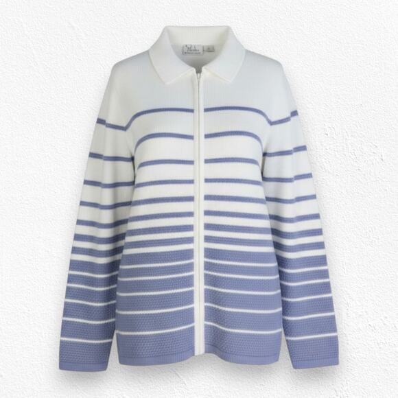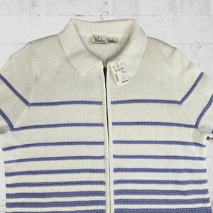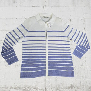 Y2K Vintage Periwinkle White Stripe Full Zip Up CJ Banks Sweater Jacket Size 14W