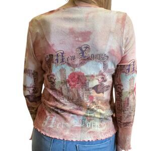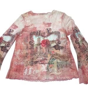 Y2K Vintage Pink Mesh Shirt with Bell Sleeves Size Medium