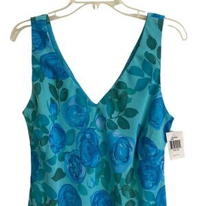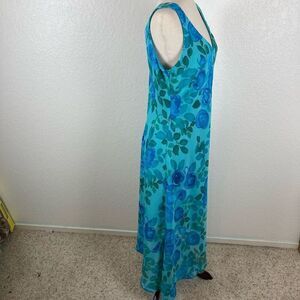 Y2K Vintage Rabbit Rabbit Rabbit Designs floral asymmetrical V-neck boho sheath dress women’s 16* turquoise blue