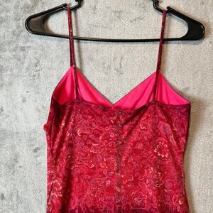 Y2K Vintage Red Bandana Print Mesh Slip Dress Boho Floral Festival Beaded Small