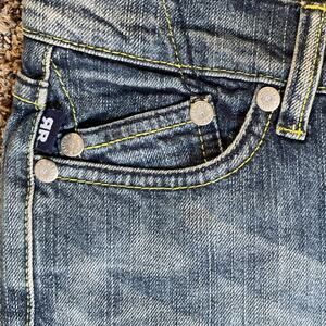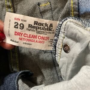 Rock & Republic jeans, bootcut jeans, designer denim, embellished jeans, size 29 jeans, women’s Rock & Republic, medium wash jeans, studded pocket jeans, flare jeans, Y2K style