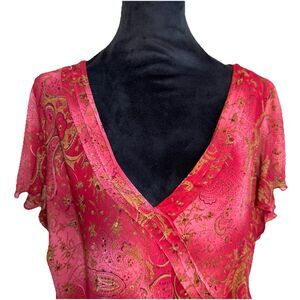 Y2K Vintage Red Paisley Chiffon Plus Size Ruffle Blouse Fairy Whimsy Goth 20W