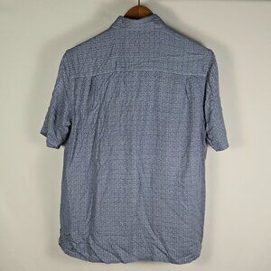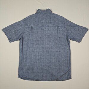 Y2K Vintage Silk Blue Textured Shirt Mens M Short Sleeve Button Up Retro Resort