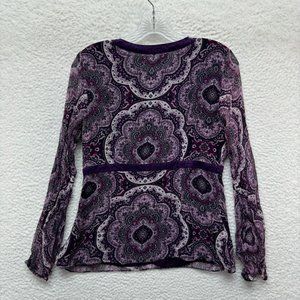 Y2K Vintage Silk Mesh Babydoll Blouse Top 6 M Medium Purple Paisley Boho Grunge