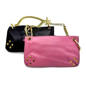 These aren’t your average mini bags. This vintage Y2K duo features two buttery leather studded purses with weighty gold-tone chain straps—one in bubblegum pink, one in jet black. Perfect for party nights, vacation photos, or just reliving your early-2000s fashion fantasy.