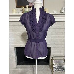 Y2K Vintage Sz S Womens Purple Ruffled Top Whimisigoth Goth Vampire Vamp
