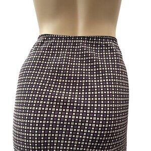 Tags: Women's skirt, silk skirt, checkered pattern, The Limited, midi skirt, professional wear, office skirt, formal skirt, medium size, black and pink, silk clothing, elastic waistband, dry clean only