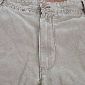 This Y2K vintage Timberland men's khaki baggy chino short in size W40 is a relaxed skater style perfect for casual, workwear, or travel occasions. Made of cotton with a solid beige color, these mid-rise shorts feature a flat front, zip closure, and slash pockets for added convenience. The relaxed fit and 10.5-inch inseam make them comfortable and on-trend for summer, fall, or spring days. Embrace the 90s hip hop and outdoor bohemian vibe with these classic chinos from a trusted brand like Timberland.