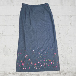 Y2K Vintage Tommy Hilfiger Gray Pink Floral Embroidered Femme Maxi Skirt Size 8